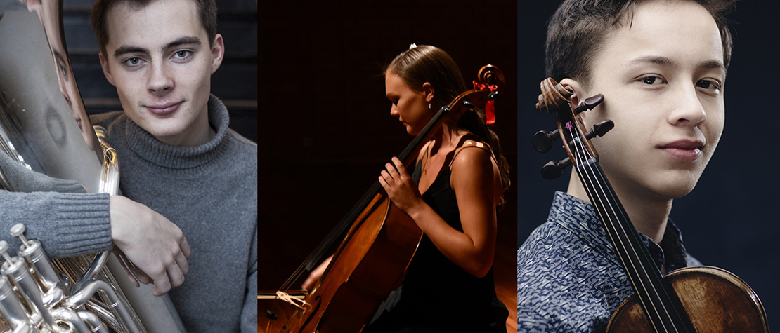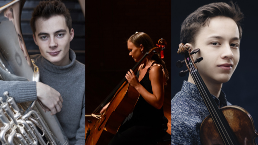 16.05.2023 Tubaisten August Schieldrop (20 år), cellisten Sandra Lied Haga (25 år) og fiolinisten Johan Dalene (19 år) er nominert til årets Equinor-stipend i klassisk musikk. Alle har bakgrunn fra Crescendo.