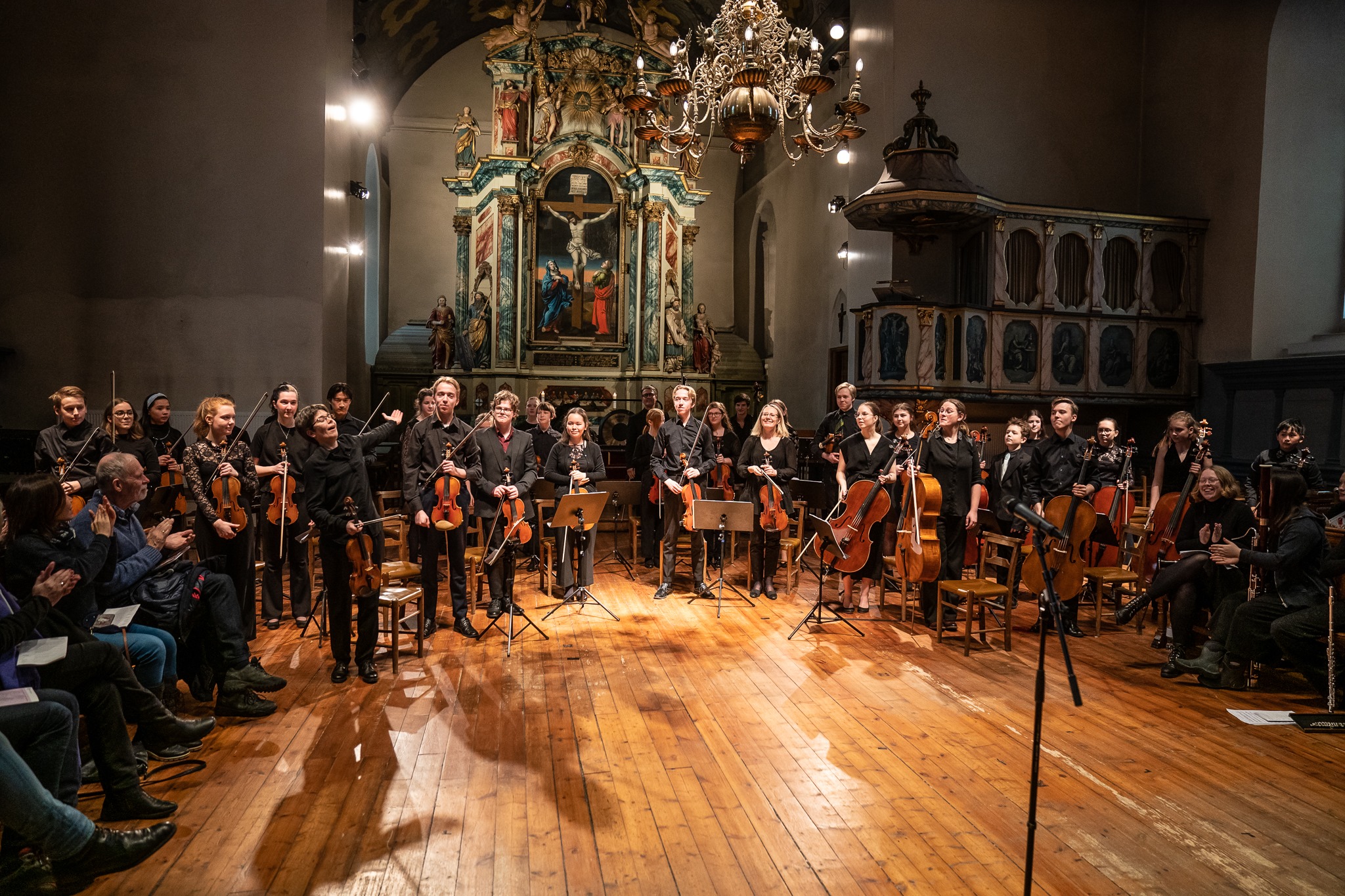 Dette har selvfølgelig ikke blitt forbigått i stillhet – tvert i mot ble det det spilt opp til musikkfest anledningen verdig lørdag 8. februar. En fullsatt Vår Frue Kirke fikk blant annet oppleve Svendsens strykeoktett i A-dur med både nåværende og tidligere lørdagsskolelever i et mesterlig samspill. Søstrene Elise Båtens (fiolin) og Henninge Landaas (bratjs) har begge vokst opp i Trondheim og vært elever ved lørdagsskolen. I samarbeid med Senter for talentutvikling Barrat Due var de i helgen tilbake for å undervise - og ikke minst spille sammen med - dagens lørdagsskoleelever.