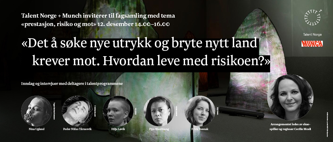 23.08.2024 Mandag 12. desember er det en enestående mulighet for faglig påfyll når Talent Norge og MUNCH i fellesskap inviterer til fagsamling, med påfølgende visning av SOLO OSLO - utstillingen i 10. etasje. Tema for samlingen er: Prestasjon, risiko og mot