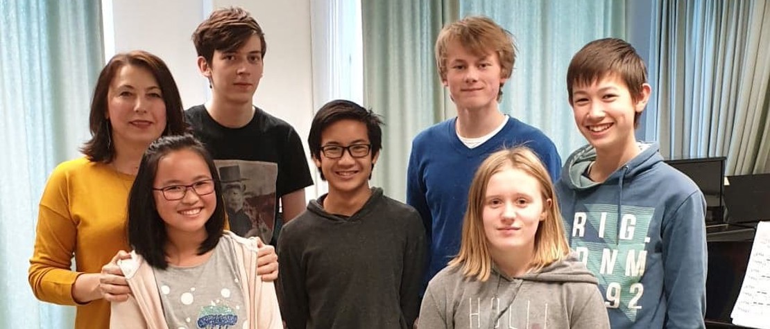 De 6 pianoelevene som var så heldige å få spille for Marina hadde forberedt hvert sitt pianostykke. Marina lyttet til elevene med stor begeistring.