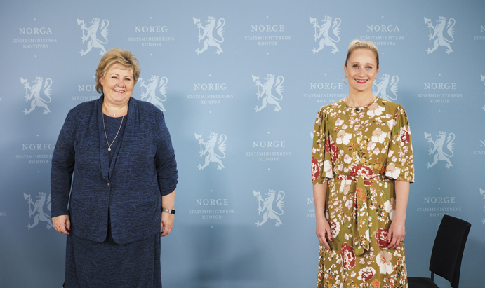 Statsminister Erna Solberg og daglig leder i Talent Norge, Maria Mediaas Jørstad. Foto: Caroline Roka