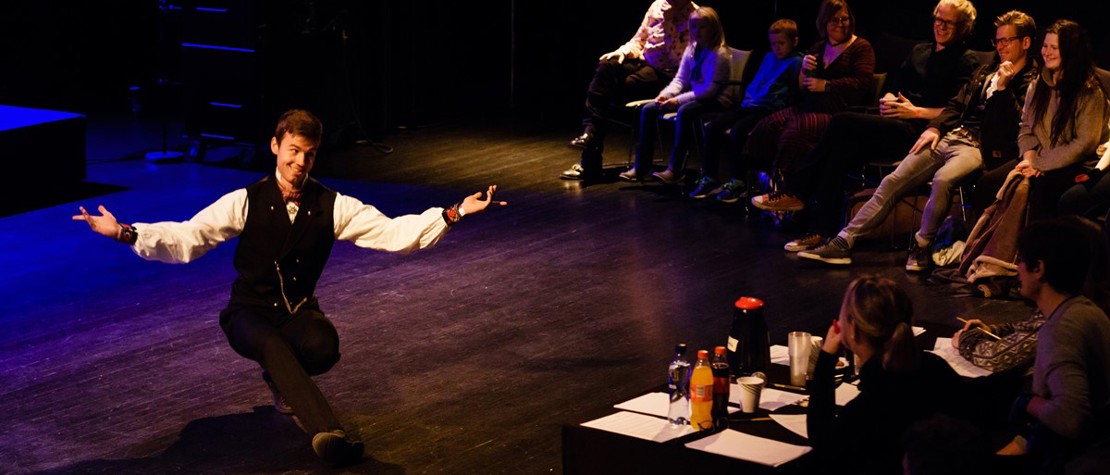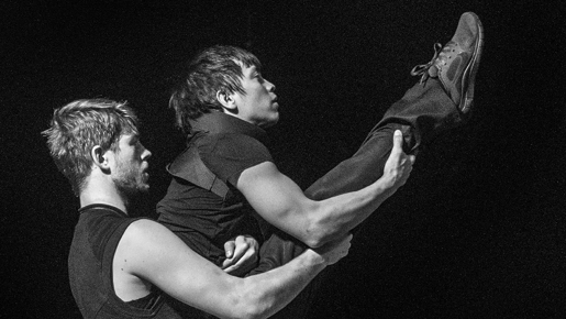 Jon Filip Fahlstrøm trenar FRIKAR X i akrobatisk golvarbeid.